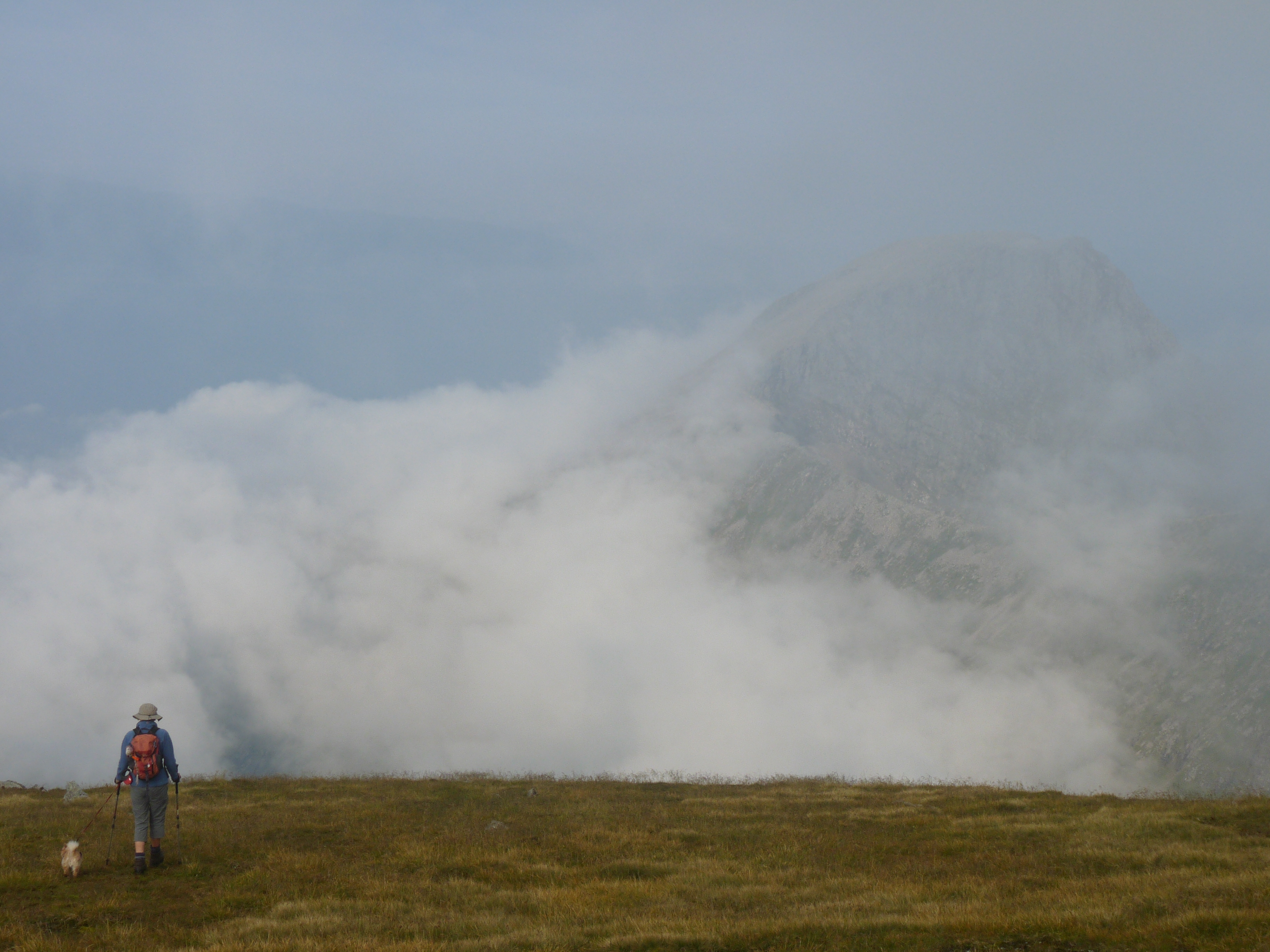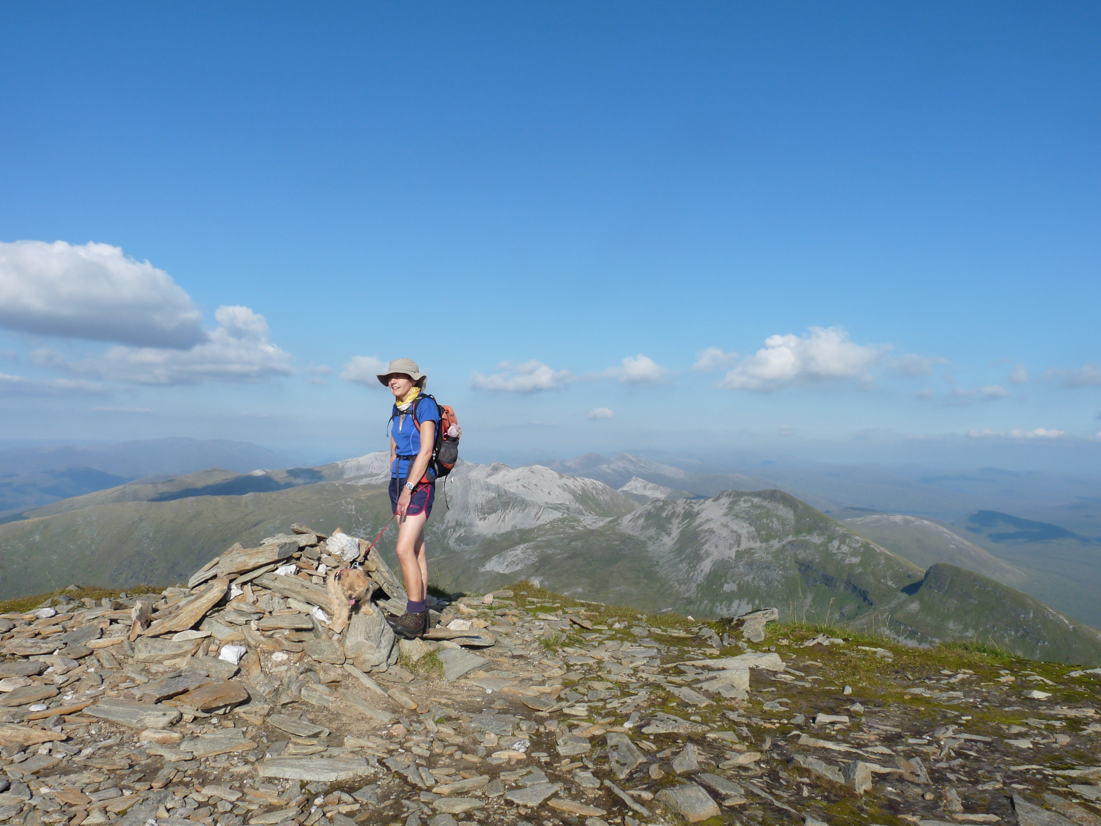 Before this summer, we'd been wondering whether our ageing dog still had any more hills left in her. She'd coped well with the badlands of Cnoc Ruighean na Sgainn, then with the jungle of Sgorr nam Fiannaidh. Things were looking promising. Being responsible, empowering adults, though, we first sat Sadie down and asked her if she was up to something more serious. With Explorer 392 open on my knee, by lucky chance she answered "I fancy the Aonachs over the Bealach Cumhann from the Waterfall Carpark, maybe with a summit camp". (What she actually said was, of course, wwwwrrff! but C and I are now fitted with a predictive text software which enables us to correctly intuit Sadie's very specific requests from the most basic of prompts. It can even deal with Gaelic place-names. Clever stuff, eh?)