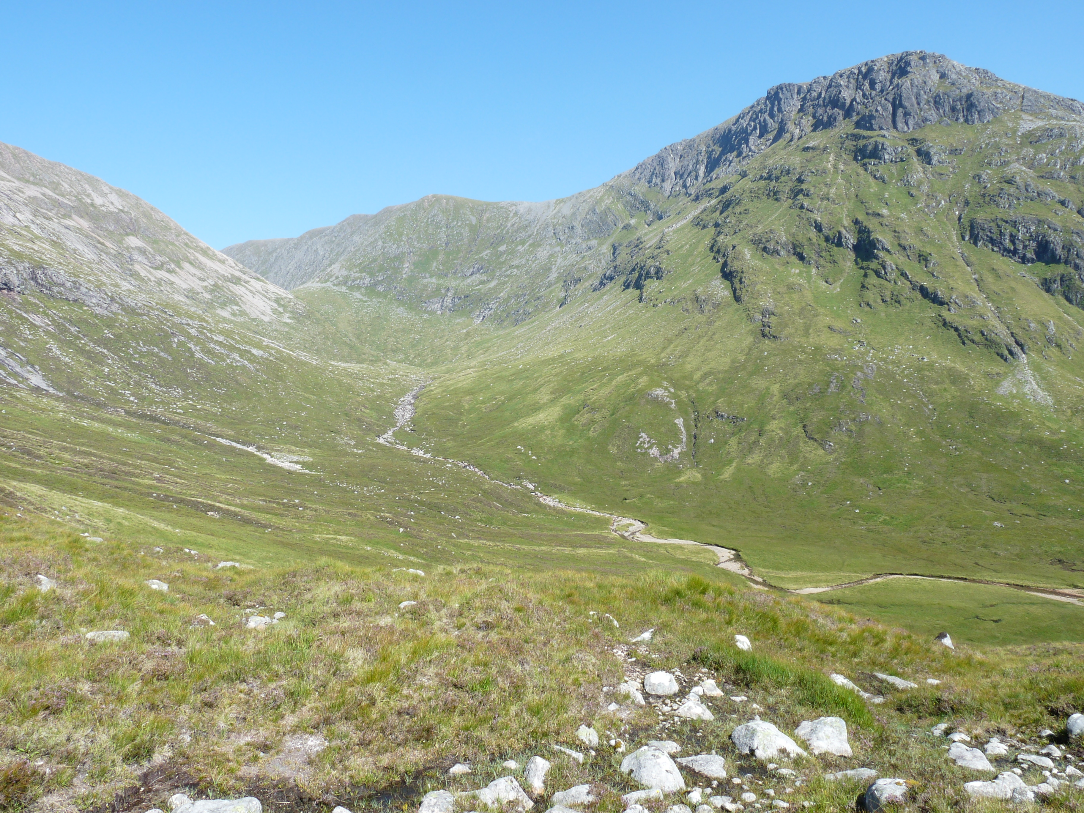 …was clear. Contour round to the Allt Coire Giubhsachan, then follow it up to its source on the bealach before turning right up onto the Aonachs.