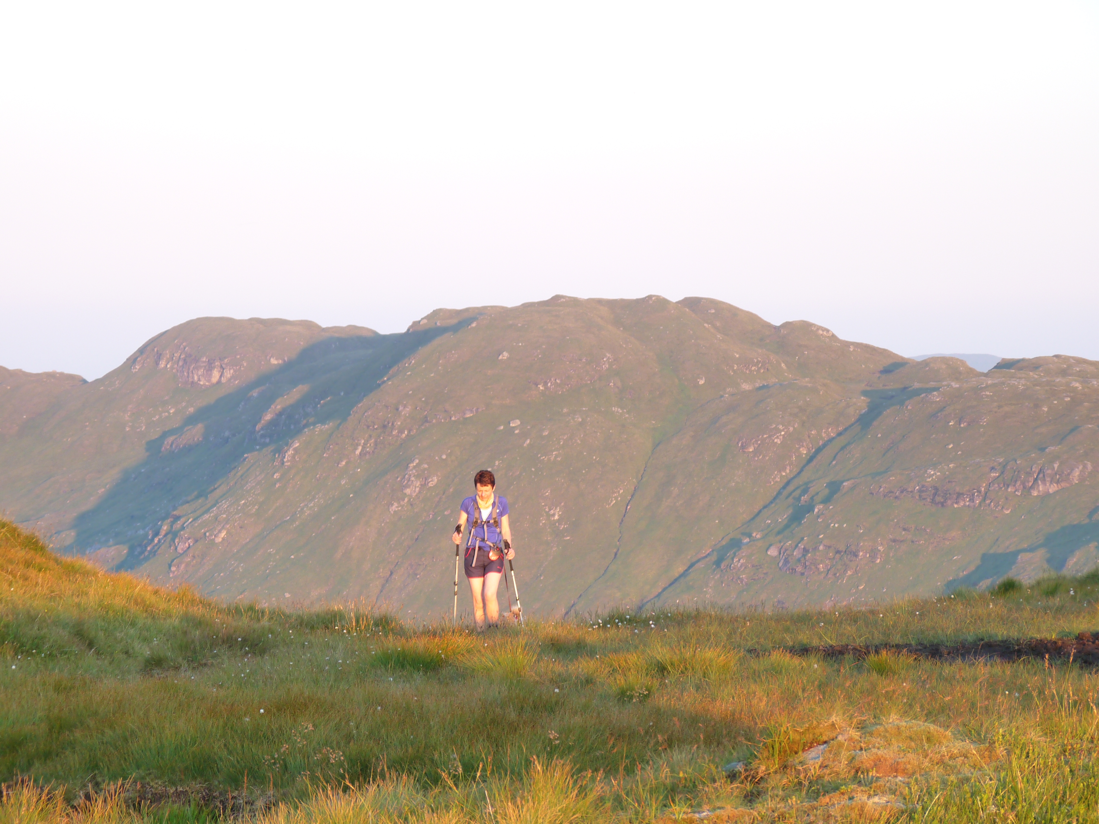 Now, I will try to not to make this sound like a running health bulletin, but before I start, I have to explain that at the end of April my wife Caroline had a hip relacement. She set herself serious targets after the op, and seven weeks later she climbed Snowdon. First target met. That, though, was only a warm-up. We wanted to get going again on our Round By Silly Routes, and so a month later that we were at Inverlochlarig, packs on, and ready to resume operations.