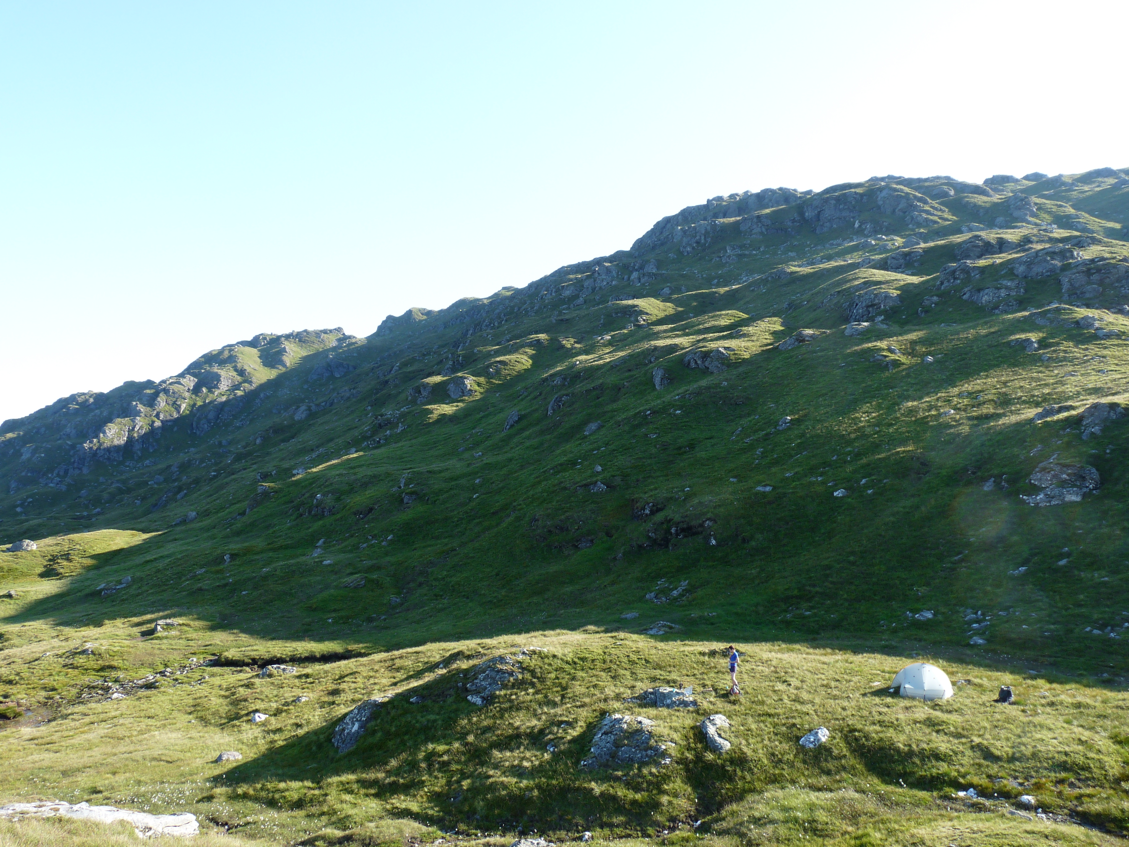 At the head of the glen we took a trackless line up towards the south-west shoulder of Beinn Chabhair. Even in the shade it was sweltering. A short while after I took this photo I doused myself in a stream and, at gone 9pm, walked on up to the ridge in just shorts. Not every day…