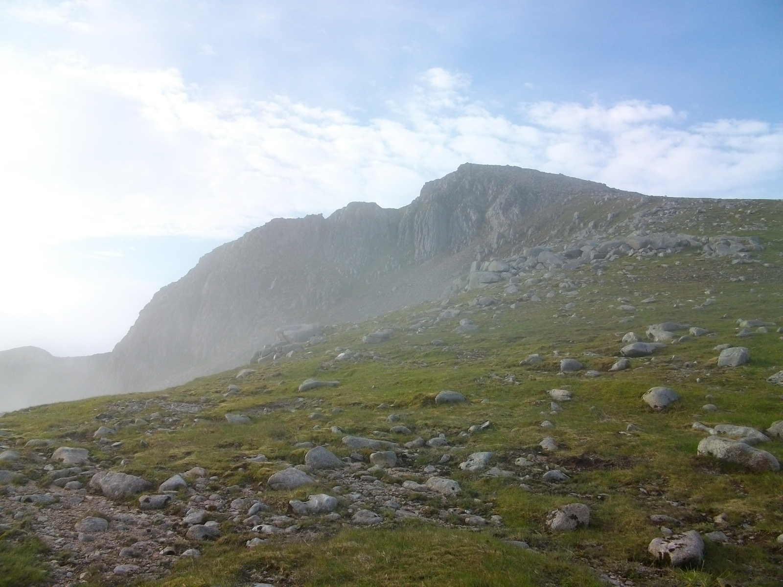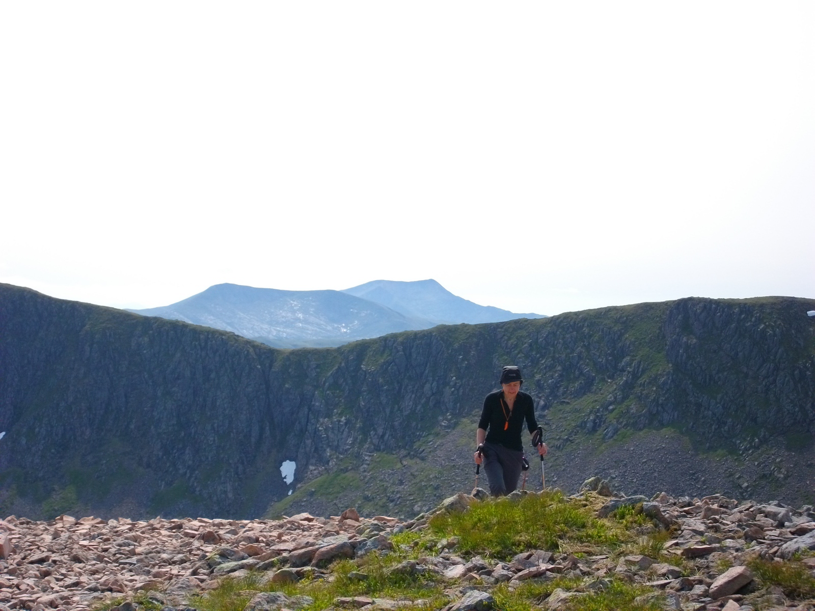…we plodded back down the Coire na Muic track to reality. Hm. Not a pleasant reality. First I managed to skitter on the shaly path, and tweek something in my leg. And then we started to meet the day shift coming up the track. Okay, the cloud was firming up behind us, and the glory had gone from the day, but even so the absence of smiles and (in one case) absence of any recognition at all came as a bit of a shock.