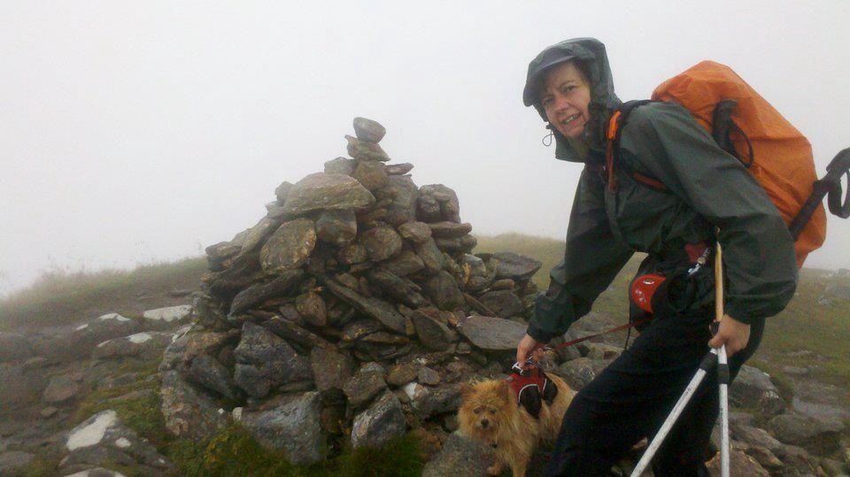 So what was the weather doing by now? As we plodded up it got muggier and muggier, and then a few blobs of rain started to fall. A bit breezy, too. We thought nothing of it. Just clearing itself, eh? By the time we got to the summit…