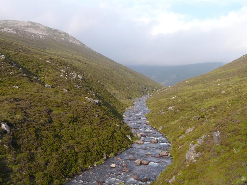 Having pitched the tent by the Glas Allt Mor where it comes down into Glen Derry, we set off up Beinn Bhreac.