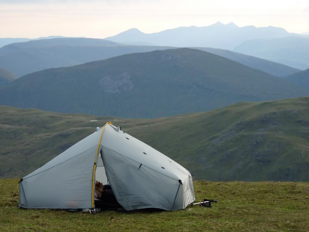 Sorry about that digression. Anyway, although you only have my word for it that our packs weren't filled with cotton wool and candy-floss, the truth is that I realised we could get away with less. The real spur for us revising the gear issue was Caroline having a fairly major op in early spring a couple of years ago. When it came to summer, she was keen to get back on the hill, but still below par physically. So - brainwave - instead of planning 'normal' hill days which left her shattered and both of us short of daylight, I reckoned that if I took a full pack with us, it would equalise our paces on the hill, and we could camp out if necessary. But at the same time, I thought if we were going to do that as standard, then we were really going to go light. Tarptent, Therm-a-Rest ProLite mats, Mountain House foods… yes, extreme measures. And NO WHISKY... an extreme absence of measures!