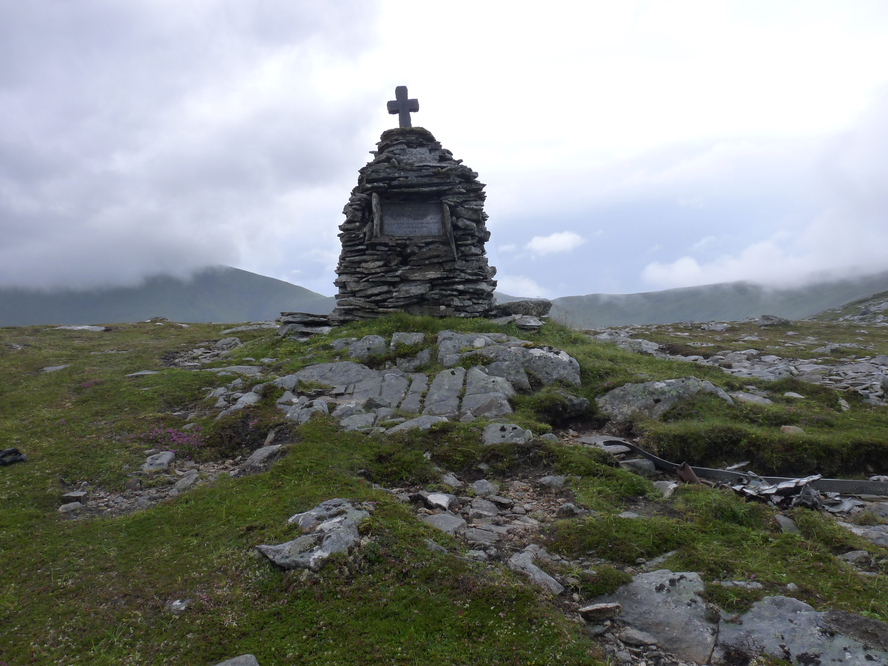 We varied the return route by heading north-east along the spine of Klibreck as far as Meall Ailein, then going down a spur to the loch. Passing, en route, what has to be one of the most remote of memorials: to a 1955 RAF crash.