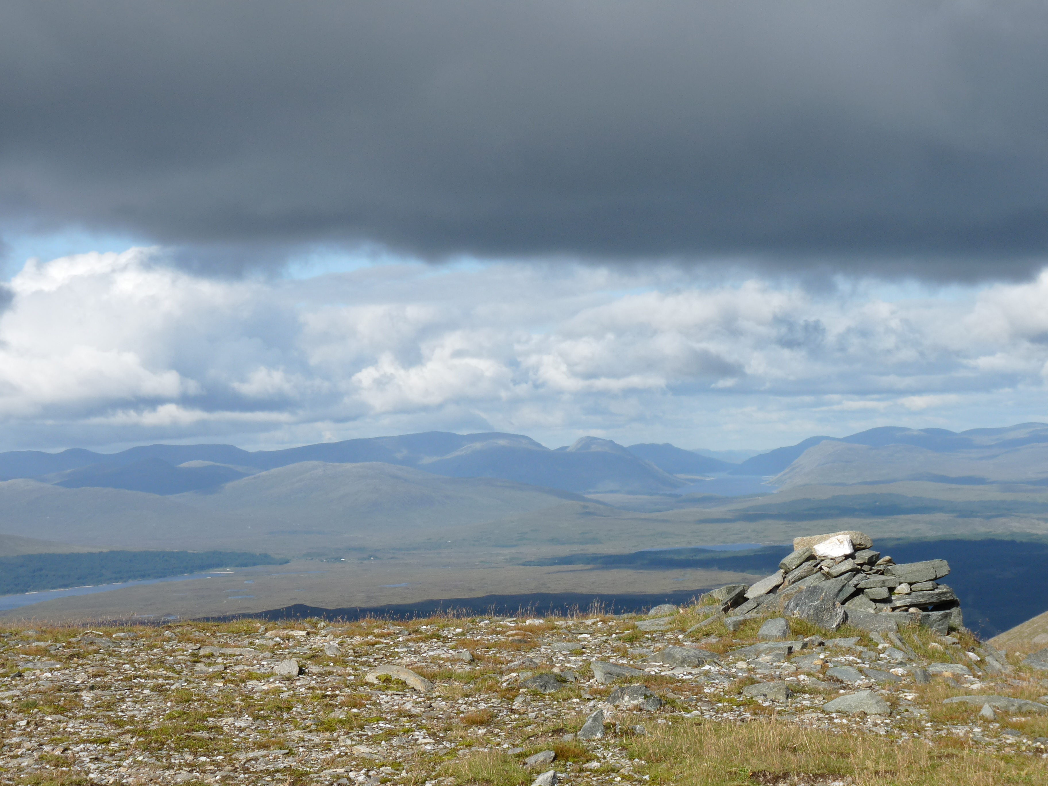 Looking straight down a distant Loch Ericht from the Meall Buidhe top…