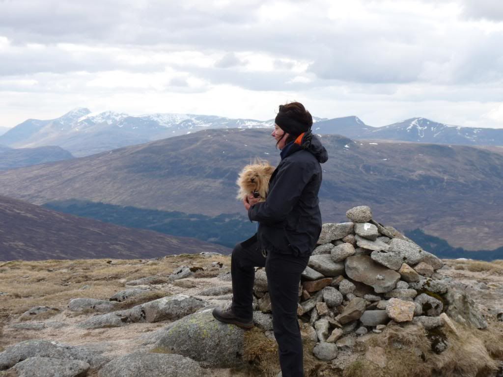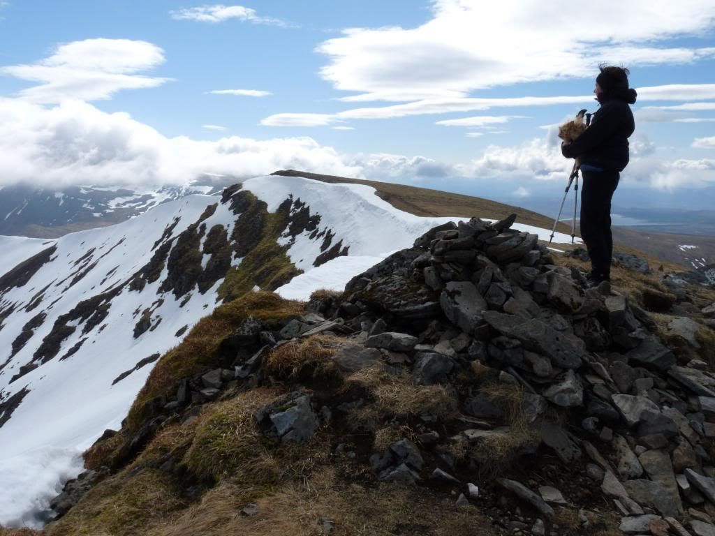From here we were able to cross back over the bridge and go lightweight straight up Sgor Gaibhre, via Meall Nathrach Mor and Sgor Choinnich. We reached the top just after four. Nice views over towards the Ben, but not weather to linger.