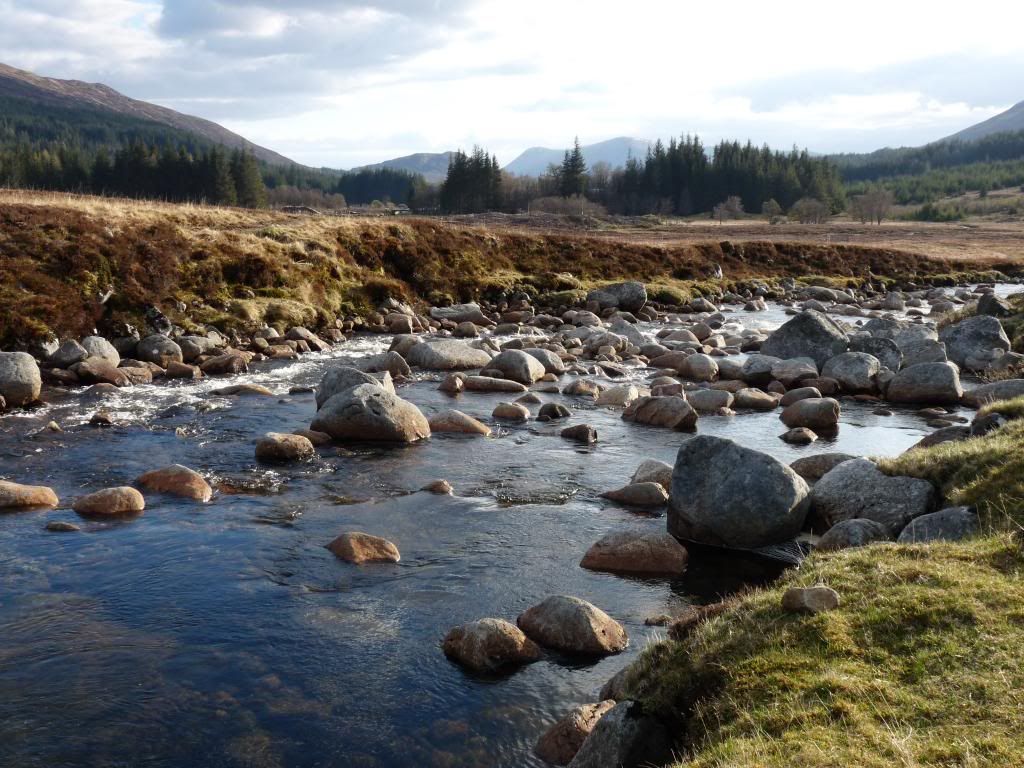 Then north-west to Meall na Leitire Duibhe, and down to where the Allt a' Choire Chreagaich enters the forestry. There's a good track into the forestry here, not marked on the map, which takes you straight down to the lodge and, in our case, the tent.