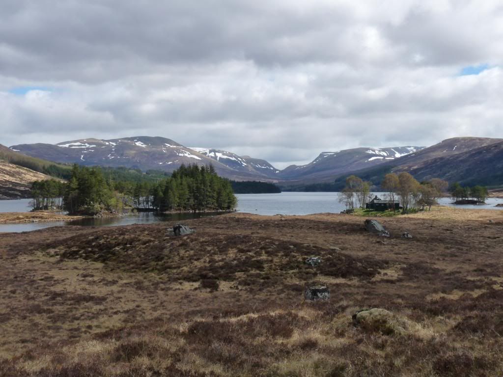 Anyway, the plan for this May trip was to take the tent in to the far end of Loch Ossian, and use this as a base to do a few of the hills around and about. That first view of Loch Ossian always stirs the blood…