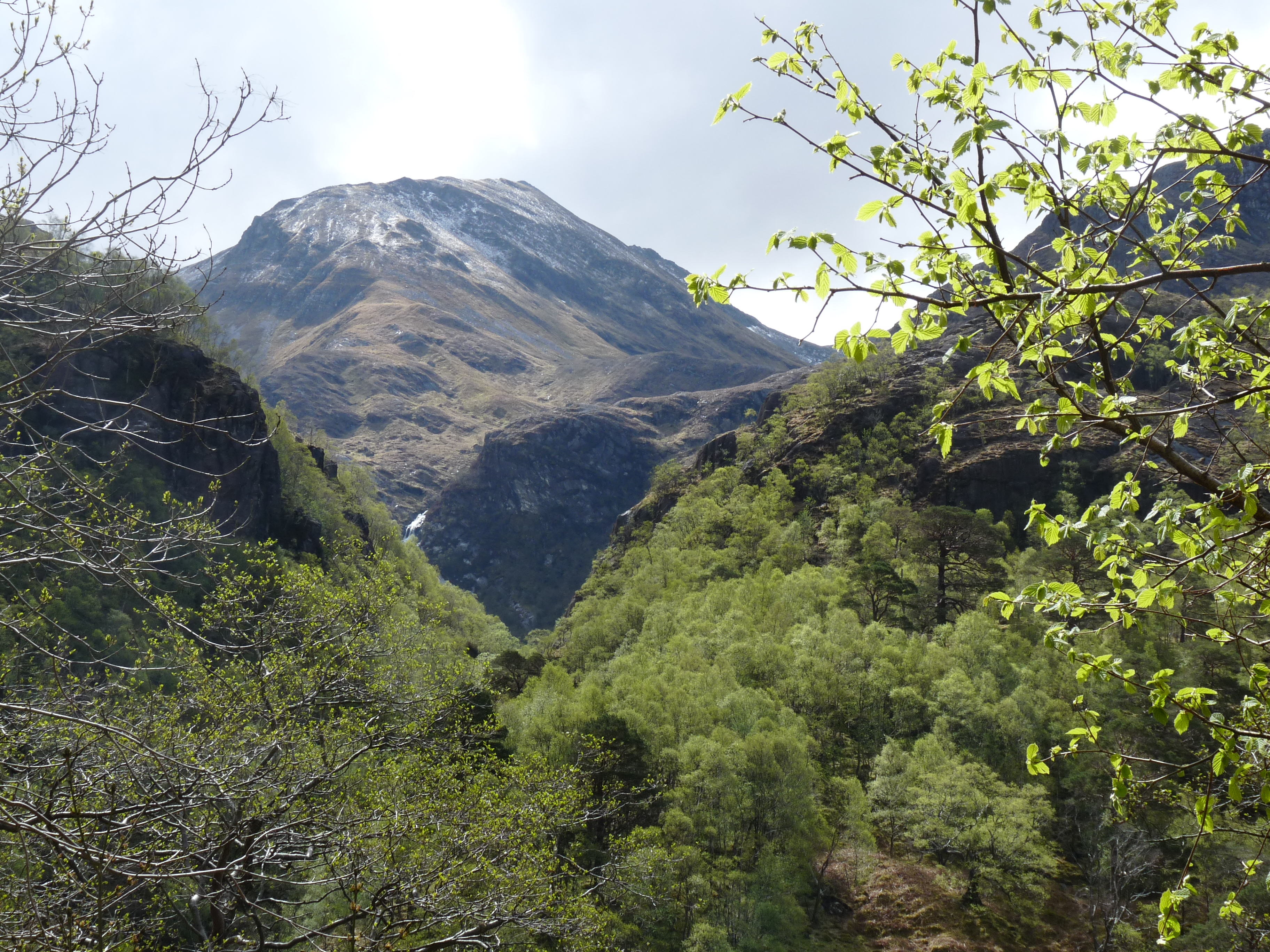 We drove the van up to Glen Etive after work on Thursday, called in at Nevisport for an (under)cooked breakfast early on Friday, and were away from the Waterfall Carpark by mid-morning. Up through the Nevis gorge, with the birch leaves late, but still looking full of promise and smelling gorgeous…