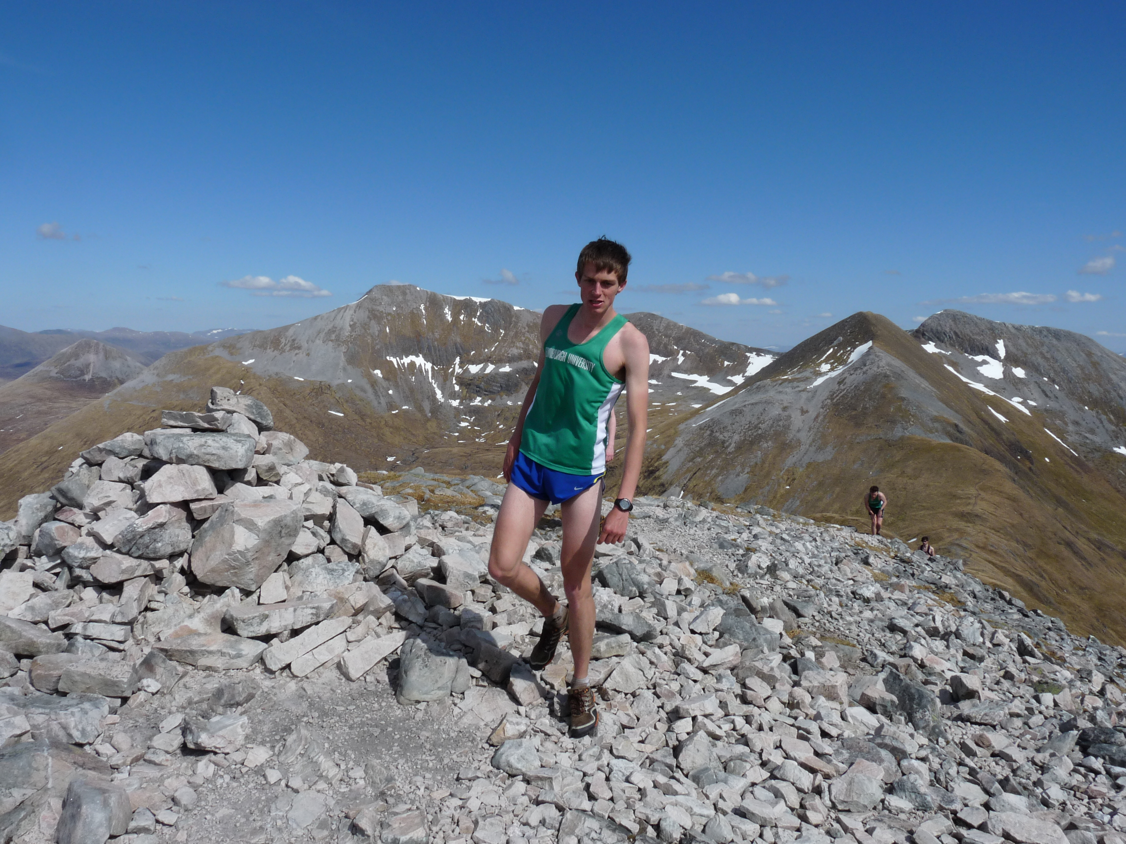 And yes, they were flying. They paused to wait for each other and chat with us (they were barely out of breath), but then zipped off again. And my camera tells me that between them leaving this summit, and the following zoom of them all gathering on point 909, en route to Am Bodach, took them eight minutes! Speaking as one who had made a flailing, failed attempt to beat his own marathon record the previous week, I was bitterly envious of this group. Or I would have felt bitter, but actually they were Really Nice. So, Edinburgh University Haries, if you come across this photo, print it out and put it away to enjoy when you're fifty-something and - no matter how hard you try - you just can't do that kilometre from Stob Coire a' Chairn in less than nine minutes…