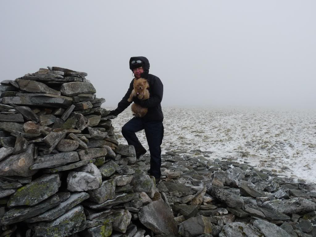 A photo which, now I come to look at it, begs one question: where on earth was the dog? C looks like she's holding her but… perhaps she'd been beamed up. Well, wherever she'd got to, she was back with us by the time we reached An Sgarsoch - though she doesn't look entirely happy about it…