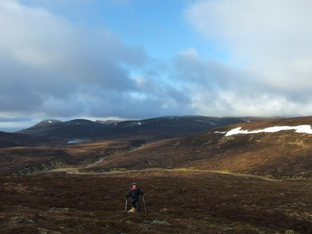 The following morning the weather hadn't actually broken, but it was telling us that we were back in the real world. Still, off we headed up Carn an Fhidleir. The campy spot is down there on the left. Again, the going was trackless, but not so bad. What was that Sadie? Right, thanks for that, but I think they heard you the first time.