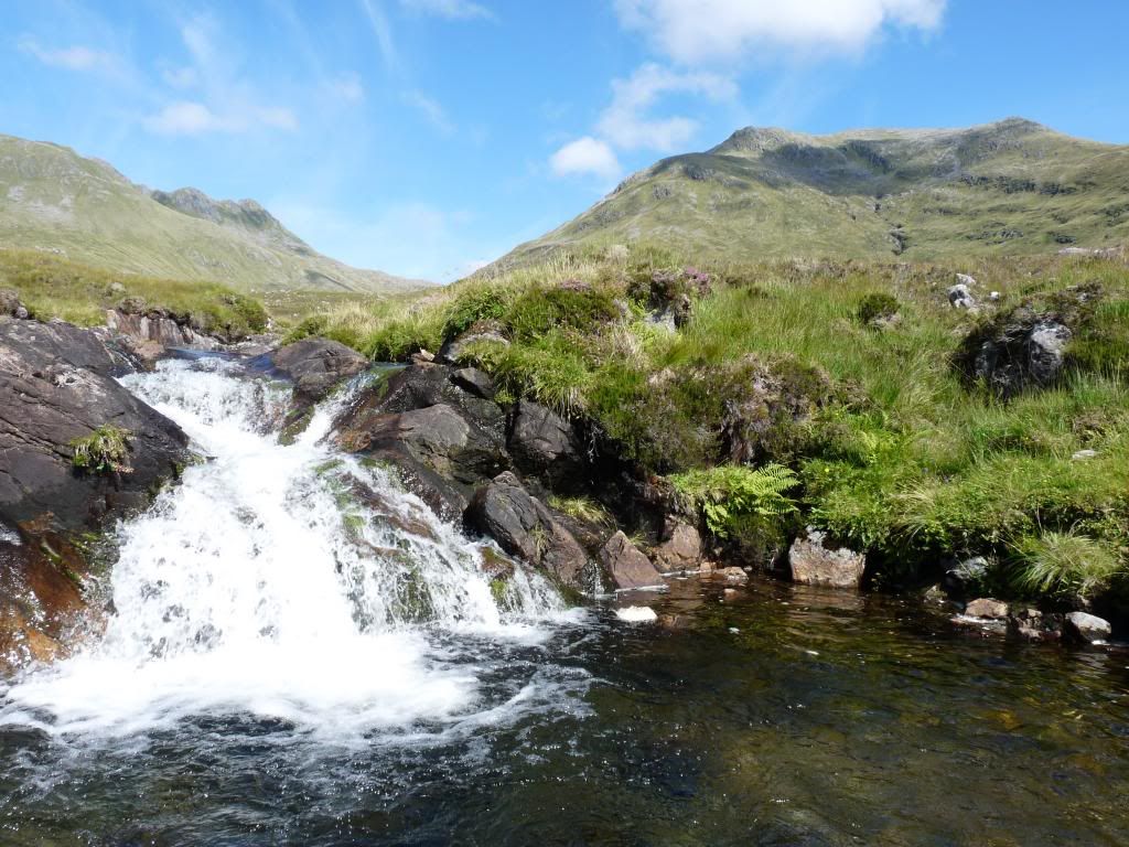 One of life's better coffee-spots: where the streams join in the Gleann Dubh Lochain.…
